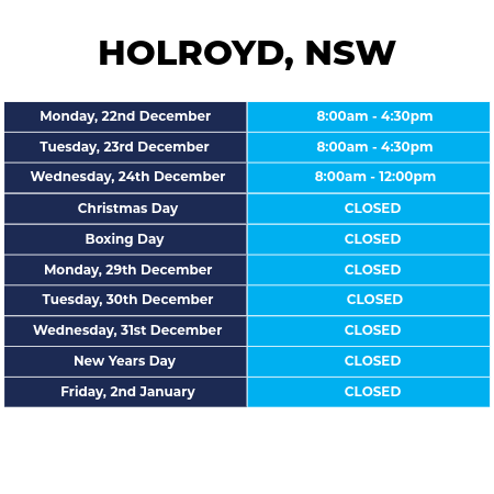 Sydney will close for a break this year so please take advantage of our  December Stock up Deals and be prepared before we close on the 24TH of December.